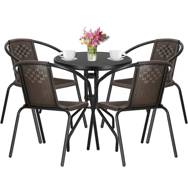 MEBLE OGRODOWE ZESTAW MEBLI OGRODOWYCH STÓŁ+4 KRZESŁA NA TARAS BALKON BRĄZ