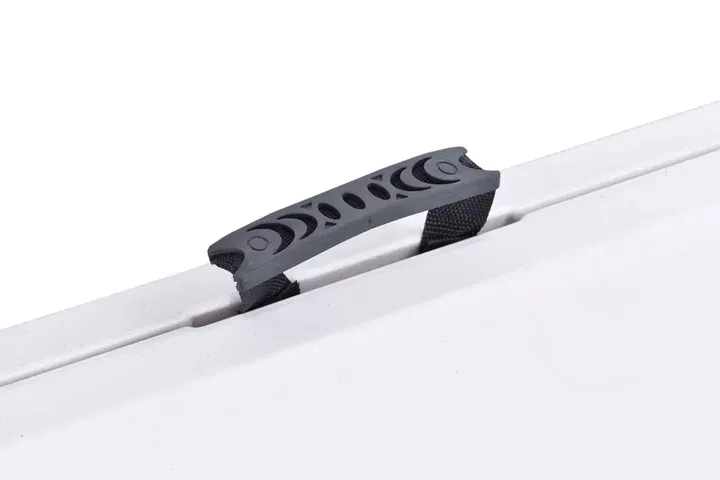 Stół można łatwo złożyć do poręcznej walizki, co czyni go idealnym rozwiązaniem do organizacji eventów, spotkań plenerowych oraz targów. Dodatkowo, posiada wygodną rączkę transportową, ułatwiającą przenoszenie.