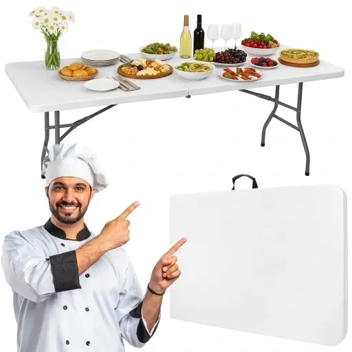 Składana konstrukcja umożliwia złożenie stołu do poręcznej formy walizki z uchwytem, co znacznie ułatwia transport i przechowywanie. To idealne rozwiązanie na imprezy plenerowe, bankiety czy eventy, gdzie liczy się mobilność i szybka organizacja przestrzeni.