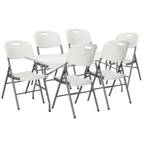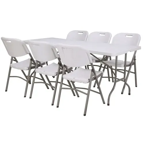 Ten kompletny zestaw cateringowy oferuje najwyższą jakość wykonania oraz trwałość materiałów. Stół i krzesła wykonane są z wytrzymałego HDPE i metalu, gwarantując długotrwałe użytkowanie nawet w najtrudniejszych warunkach.